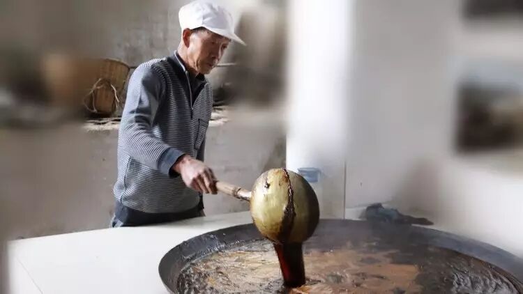 柴火灶,大火煮沸五小时,煮一天冷一天,极细的纱布过滤5次。都是手工活重活累活,双手做,机器无法代替。