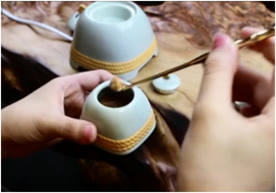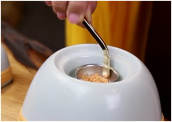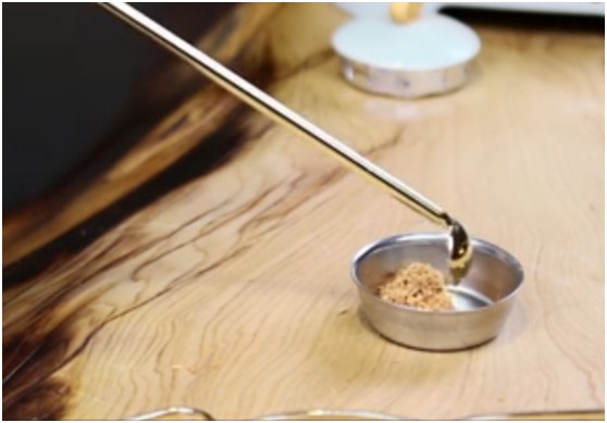 第二步:用小香勺取香粉放入小托盘里 (用量看个人需要)