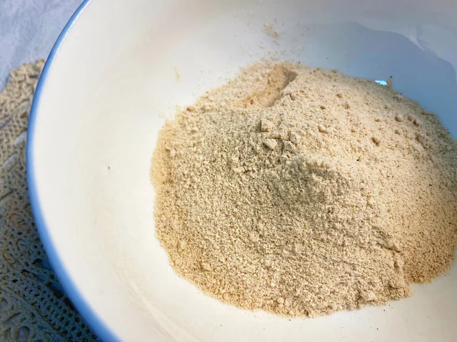 (麻辣版),取蒸粉少量,加四川辣豆瓣酱、红花椒、酱油、五香粉、水等原料拌粉。